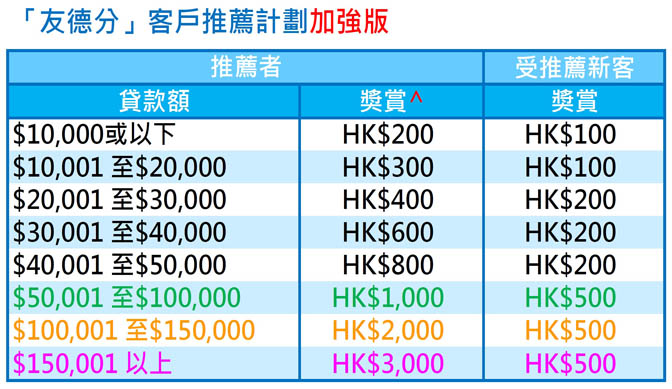 而家推薦好友成功開戶及提取貸款,最高可享獎金達HKD